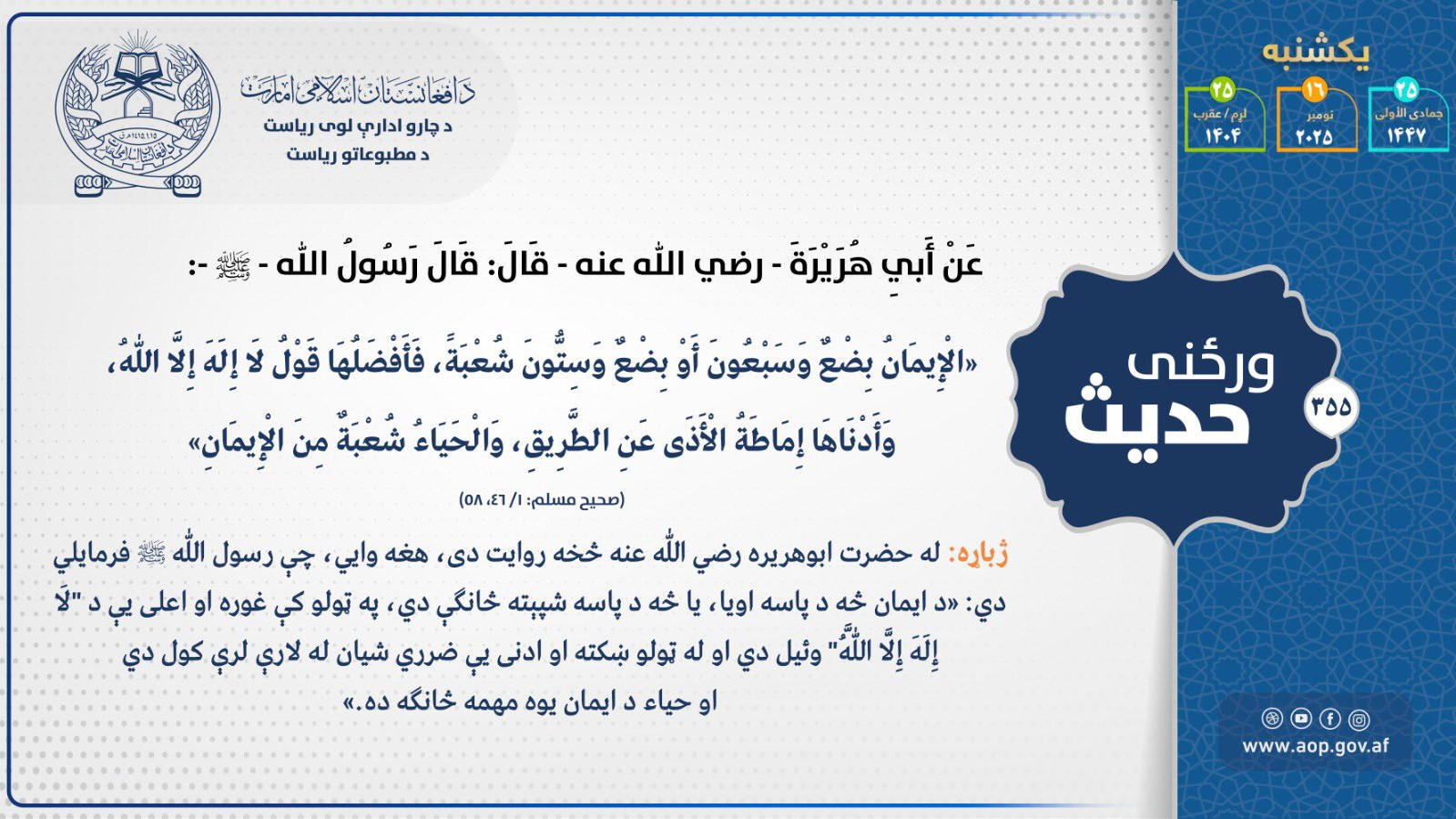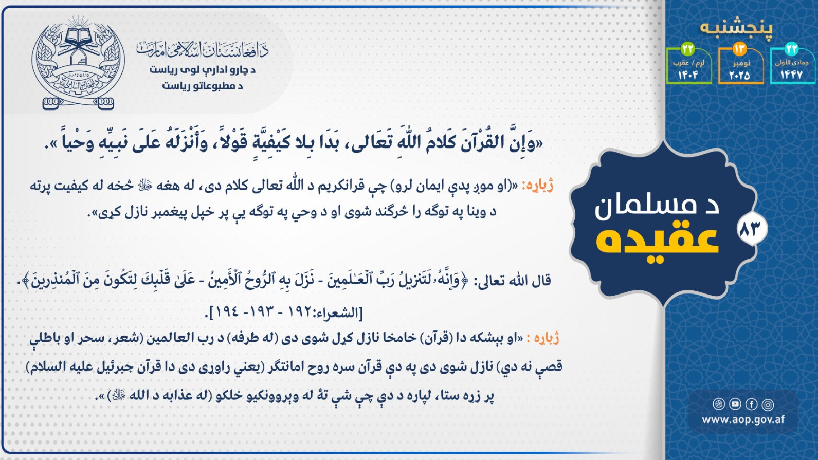 د اميرالمؤمنين شيخ الحديث مولوي هبة الله اخندزاده حفظه الله تعالی فرمانونه