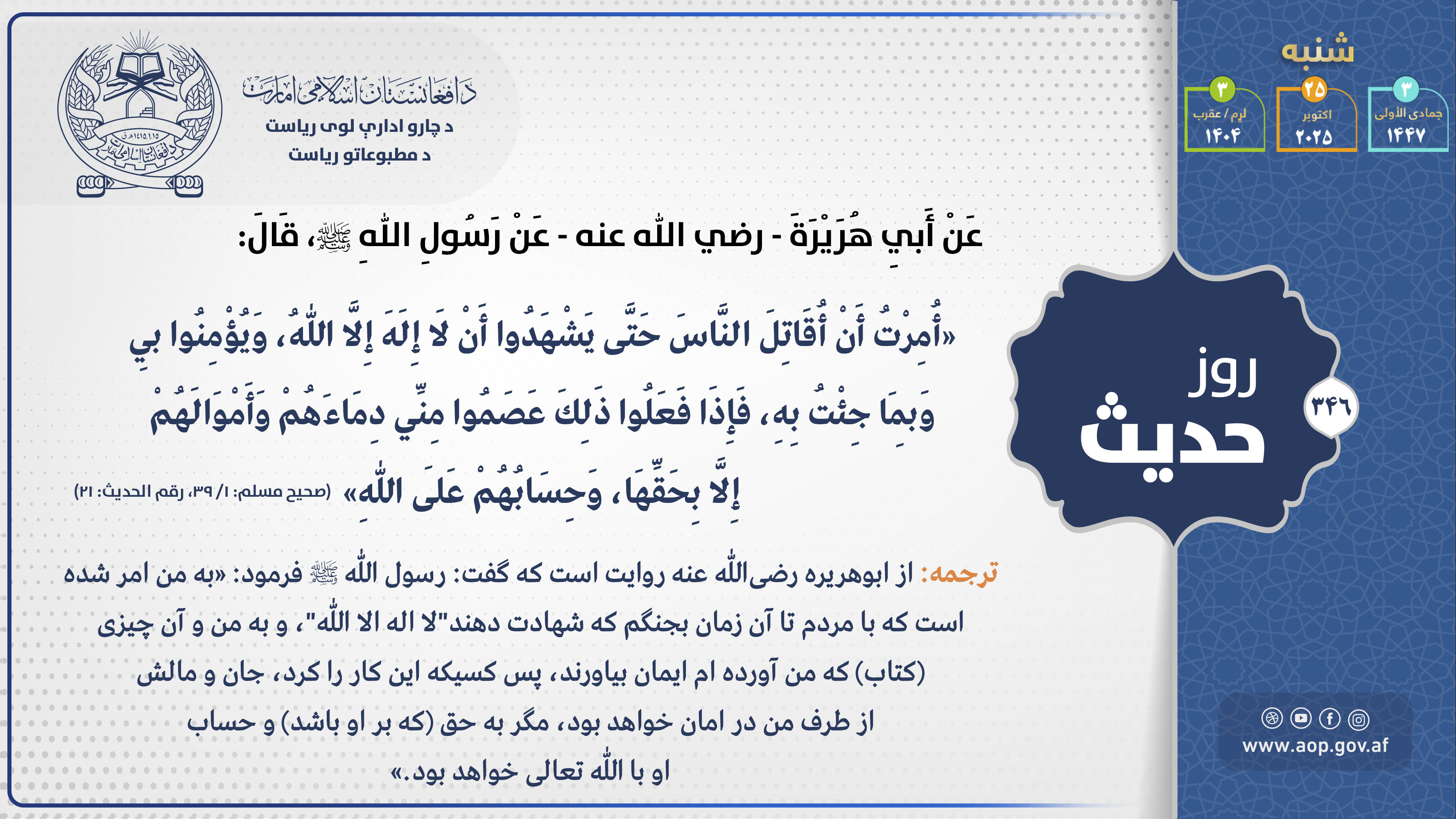 د اميرالمؤمنين شيخ الحديث مولوي هبة الله اخندزاده حفظه الله تعالی فرمانونه